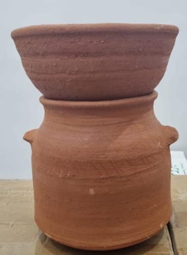 برمة كسكس فخار وسطبرمة كسكس من الفخار باليد للكسكس، تعكس روح المطبخ المغربي الأصيل وتضفي لمسة تقليدية على سفرتك. تصنع يدويًا على يد حرفيين محترفين، وتناسب الطبخ على نار هادية لتحصلي على ألذ كسكس بطعم تراثي لا يعلى عليه.